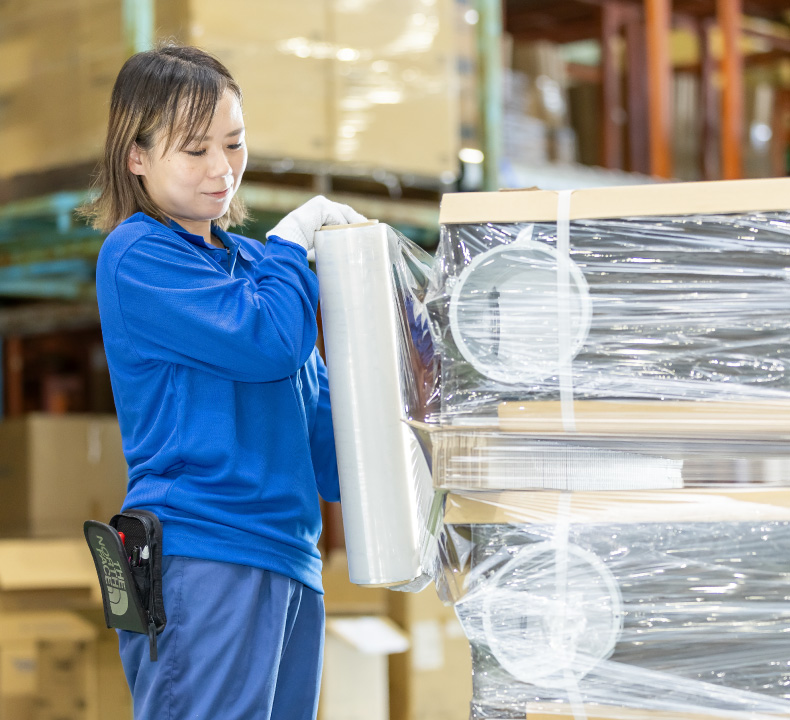 また、倉庫業というと「重たい荷物を手作業で運ぶ」というイメージを持たれるかもしれませんが、実際にはほとんどがフォークリフトなどの機械を使っており、体への負担はほとんどありません。小柄な私でも無理なく働けています。